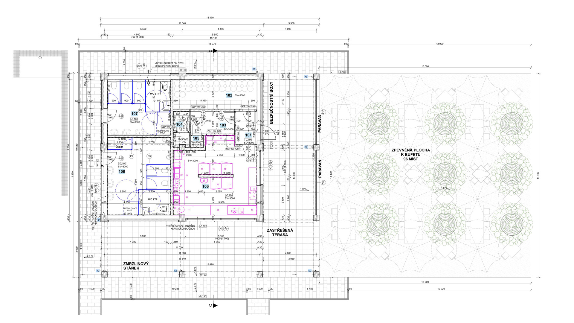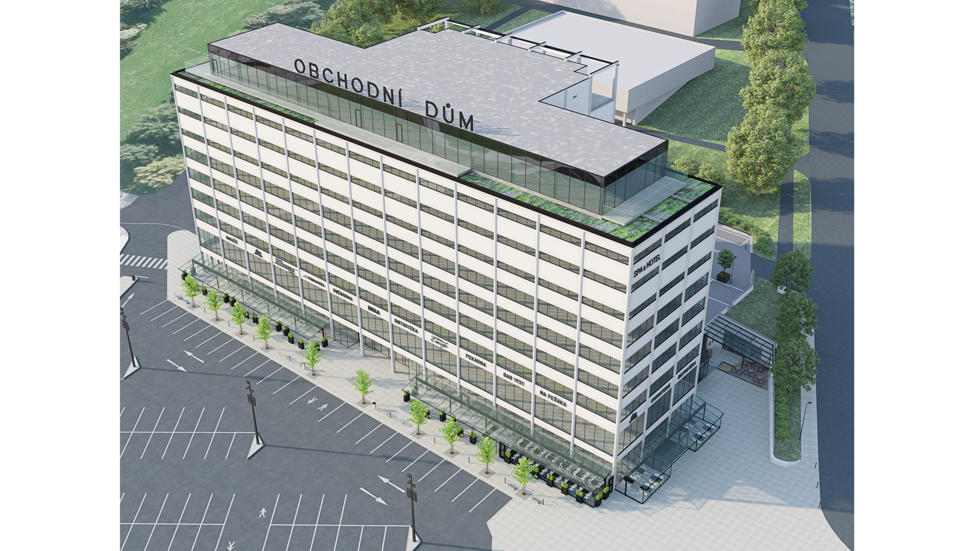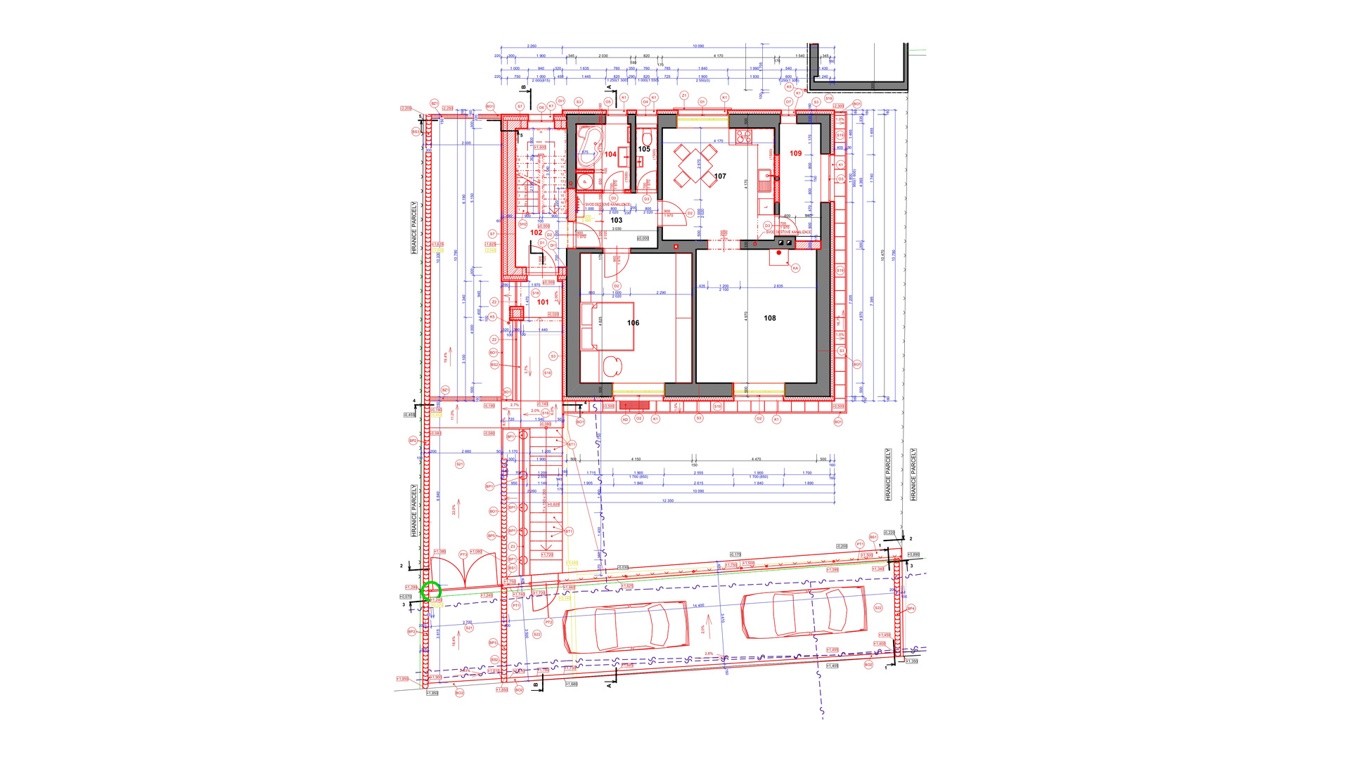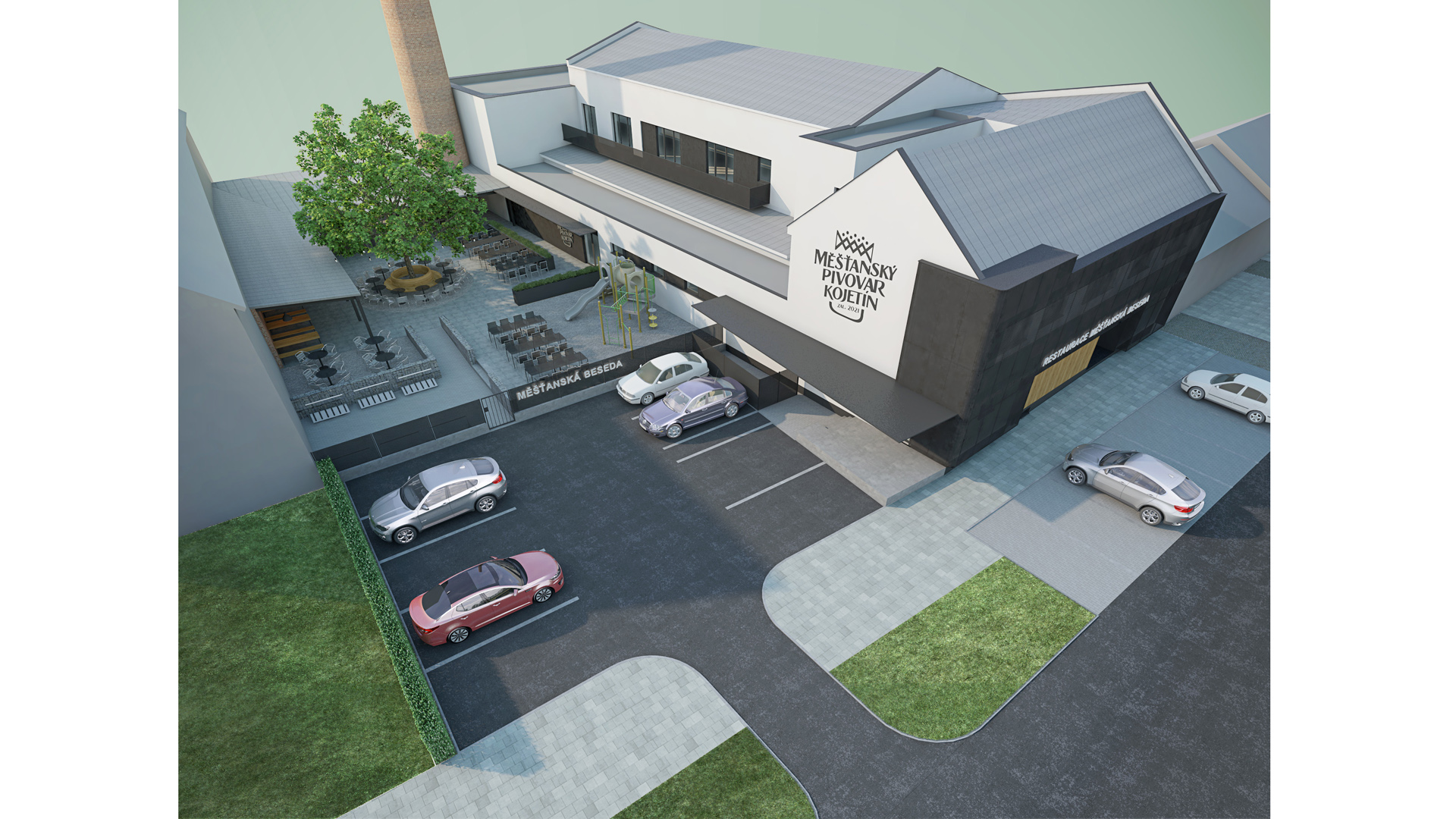 Dvorní prostory byly navrženy převážně pro parkování osobních automobilů.