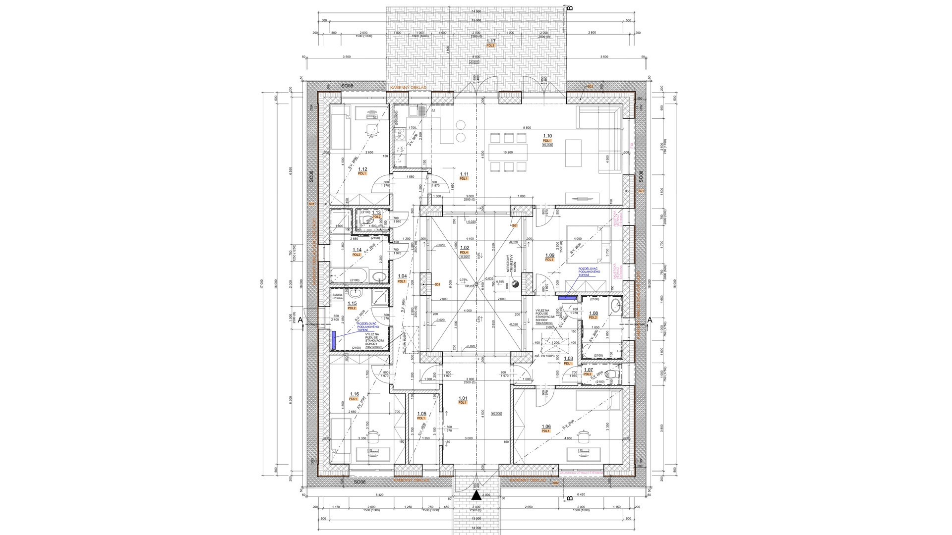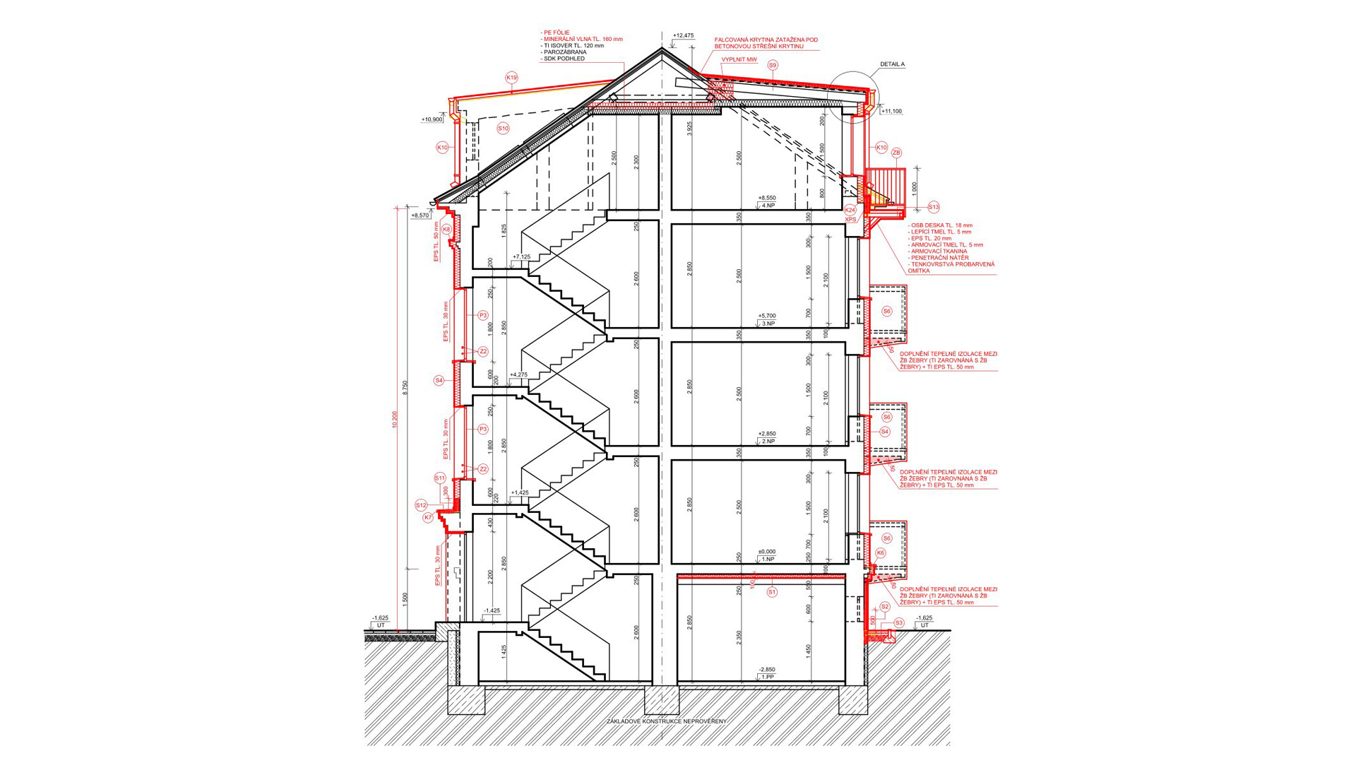 Jednalo se o větší dům, který kombinoval zděný systém se železobetonovými monolitickými stěnami včetně kontaktního zateplovacího systému v kombinaci s provětrávaným řešením fasády.