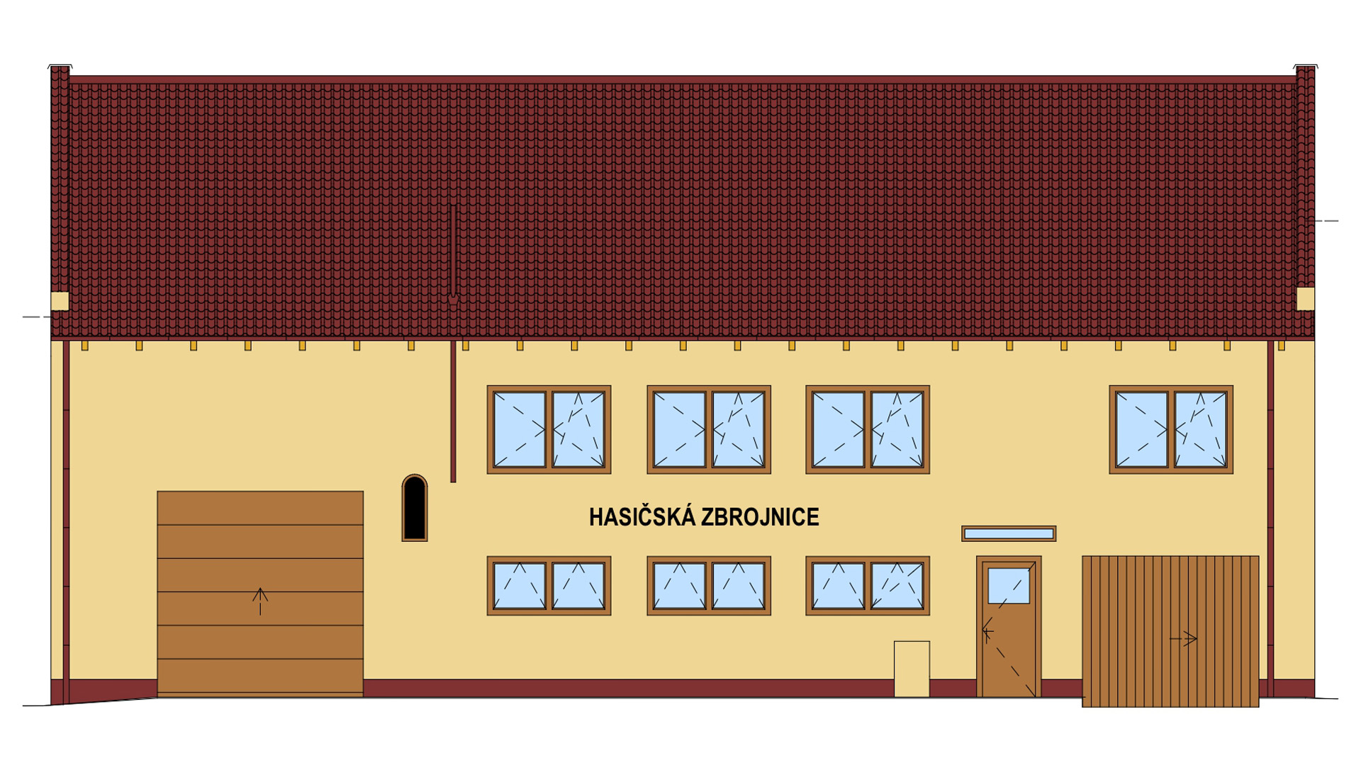 Skladové prostory, prostory pro zájmovou činnost, posilovna. V podkroví bude vybudována prostorná zasedací místnost a klubovna.