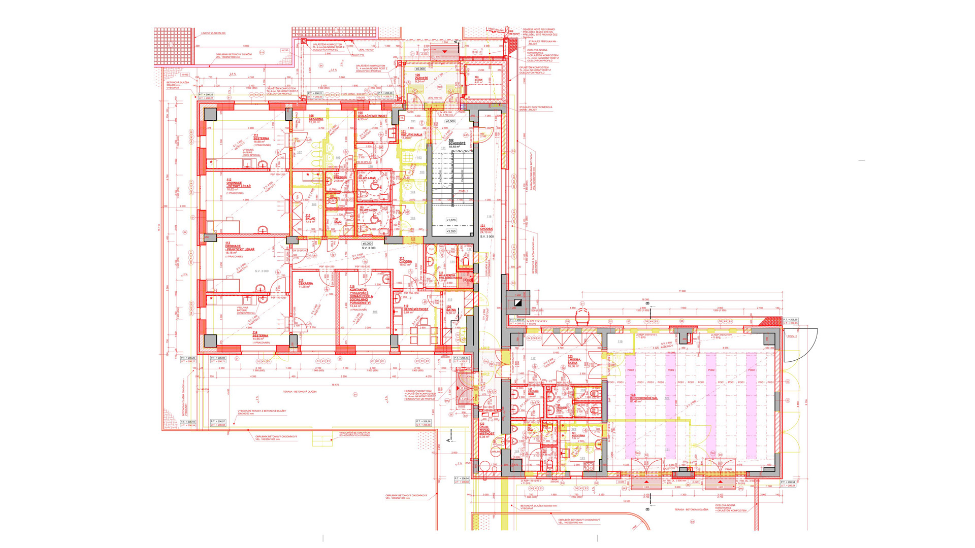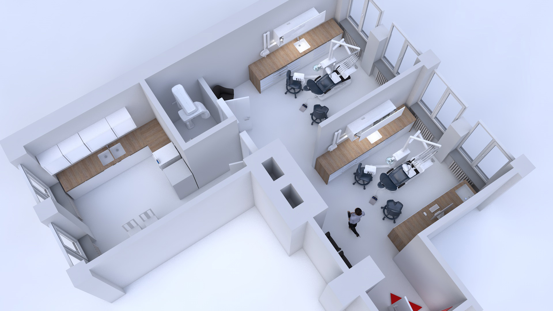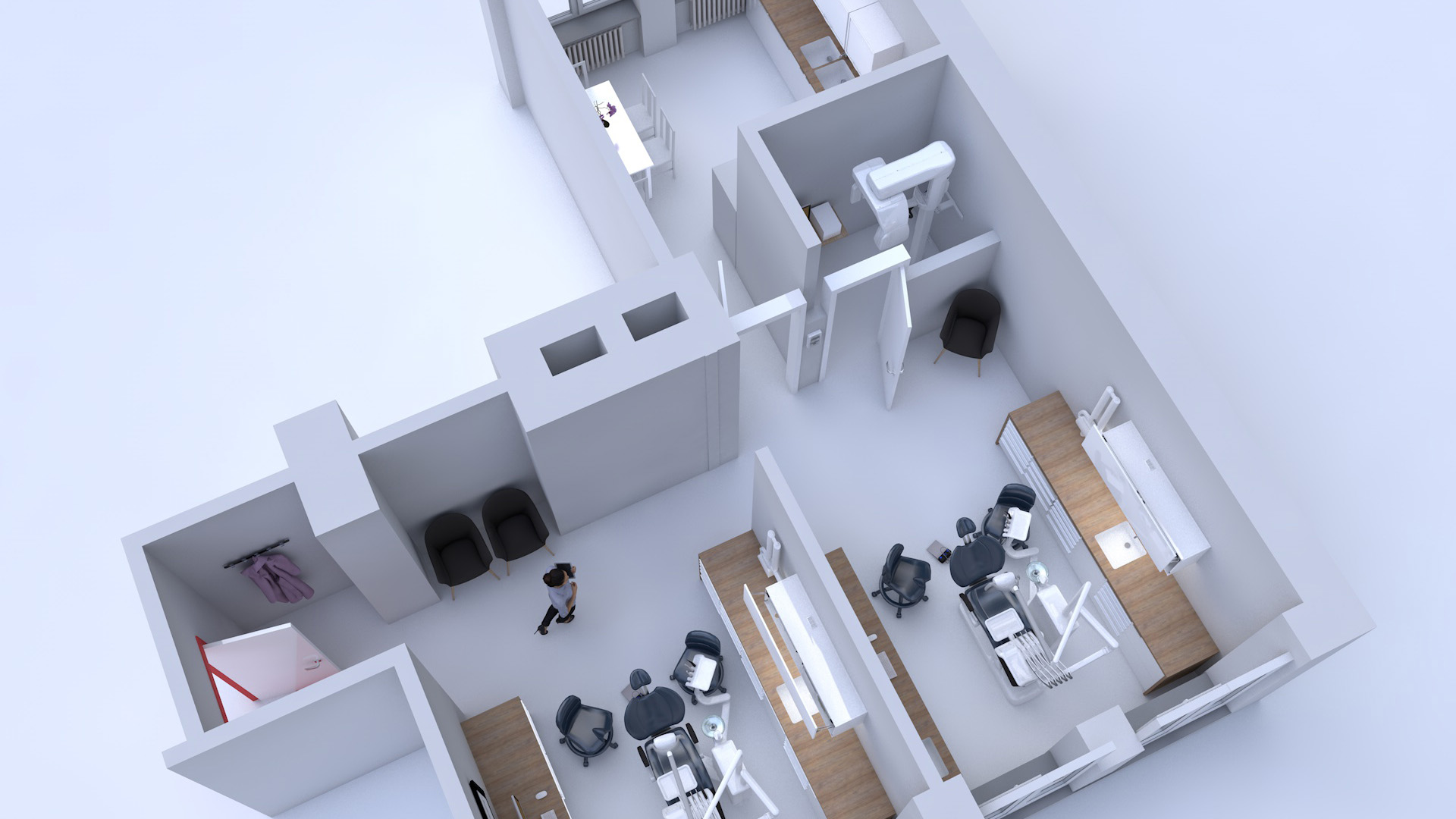 Záměrem investora bylo zrealizovat ordinaci zubního lékaře ve 3.NP ve stávající budově Polikliniky v Kojetíně. V jedné ordinaci bylo uvažováno s dvěma zubařskými křesly, stavebně odděleny příčkou. Součástí provozu ordinace bylo vybudování denní místnost a nové místnosti pro rentgen.