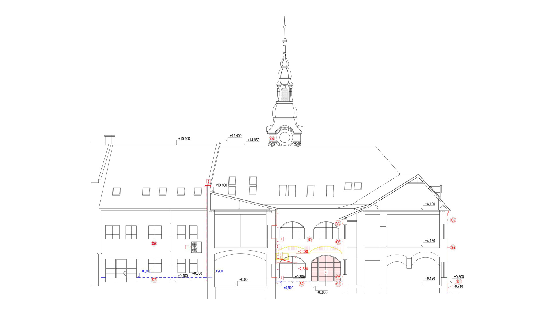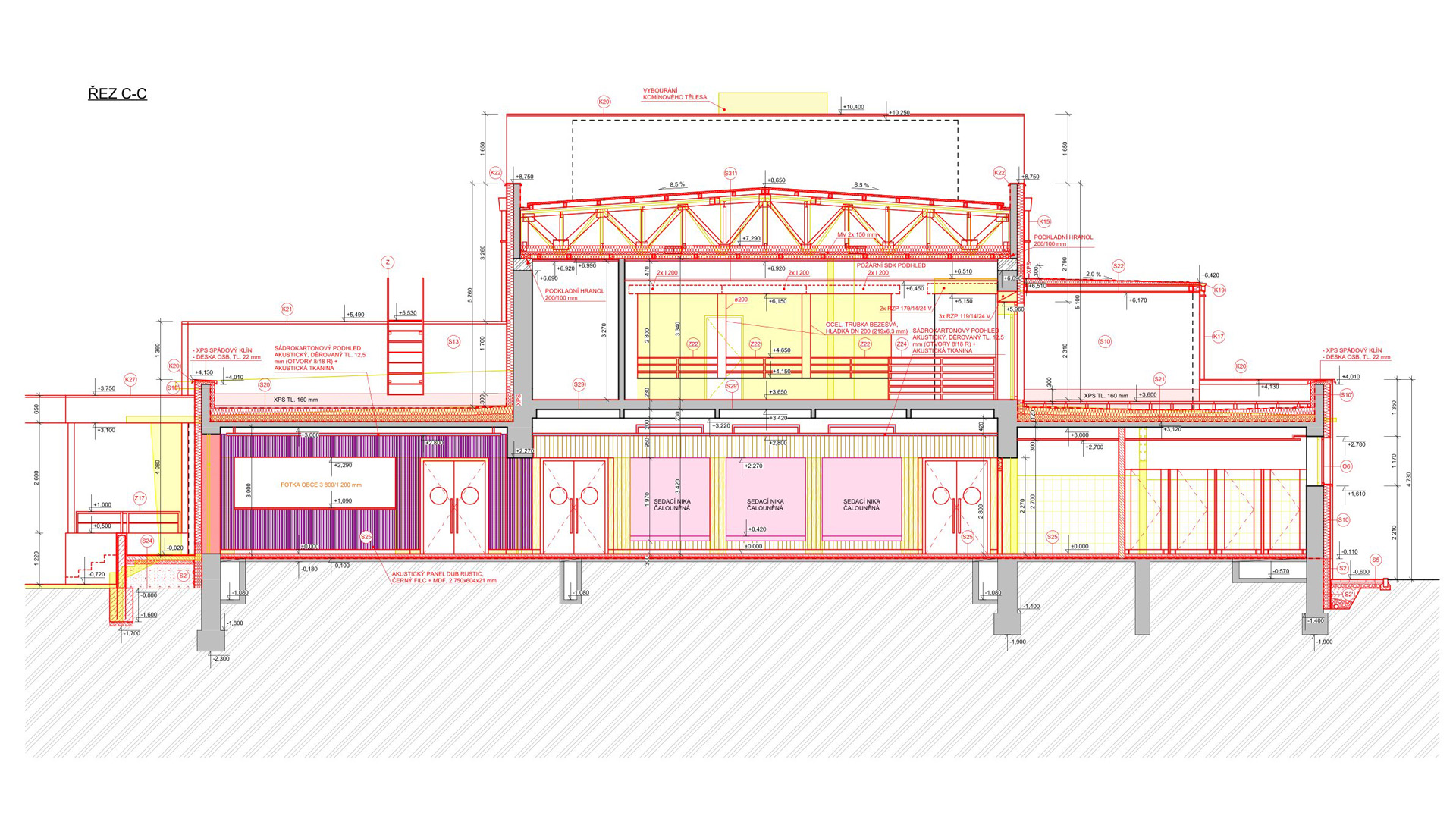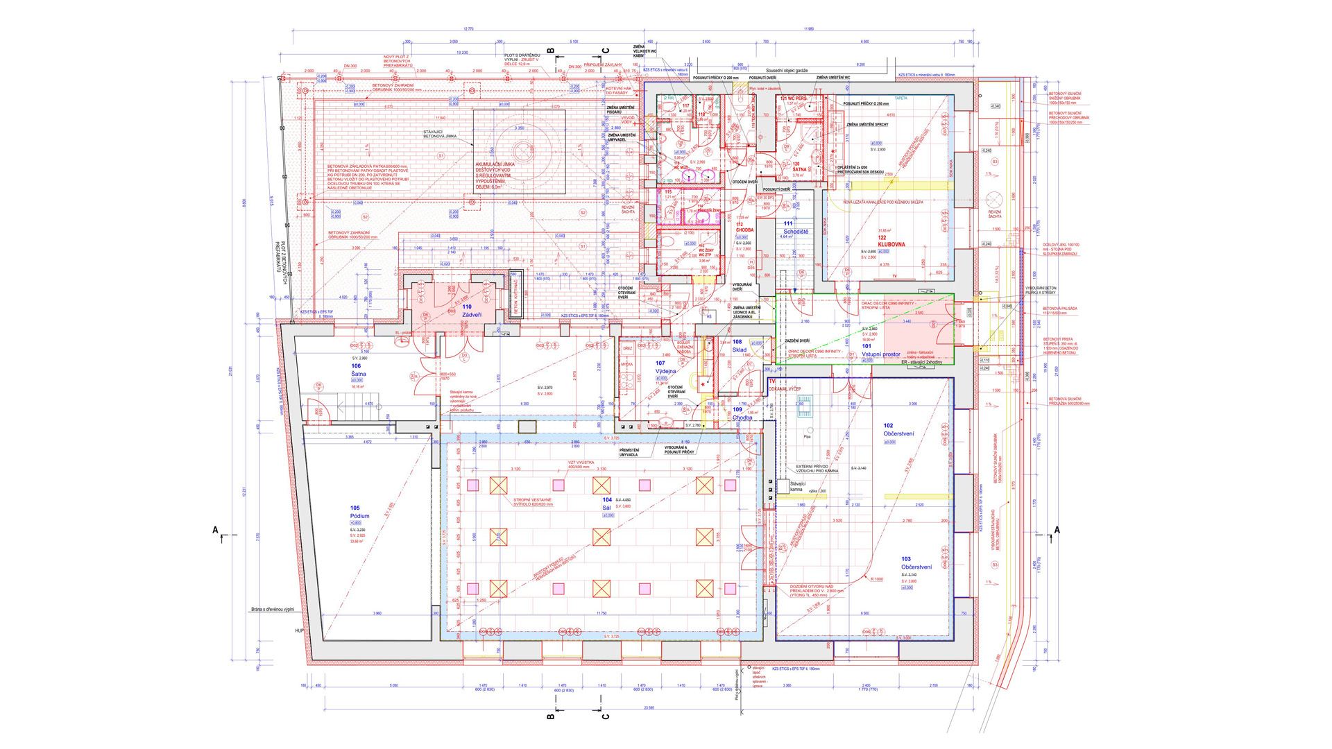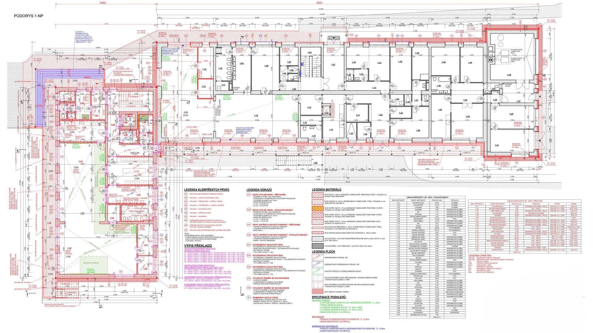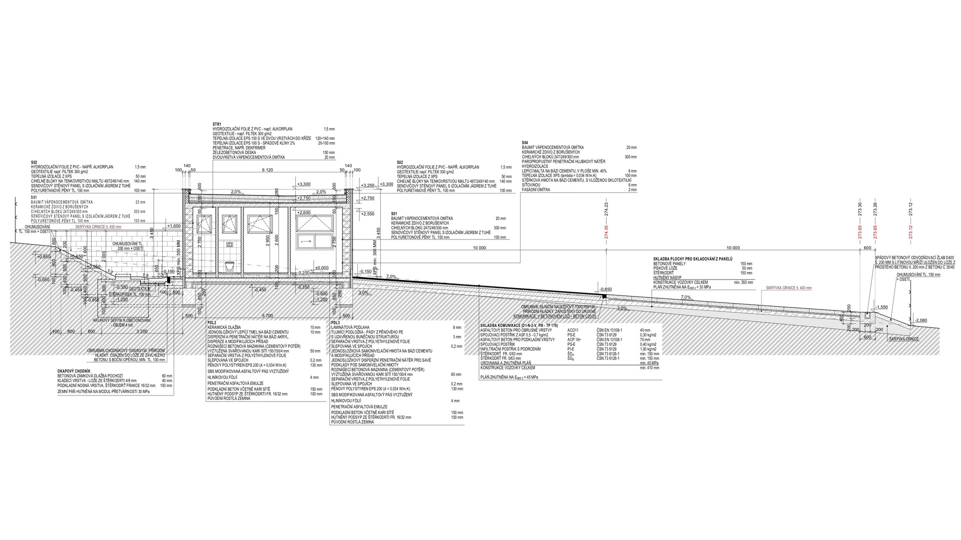 Pro objekt se navrhovalo nové zateplení, nový tvar střešní konstrukce a nové řešení podlahy na terénu pomocí provětrávaných IPT desek.