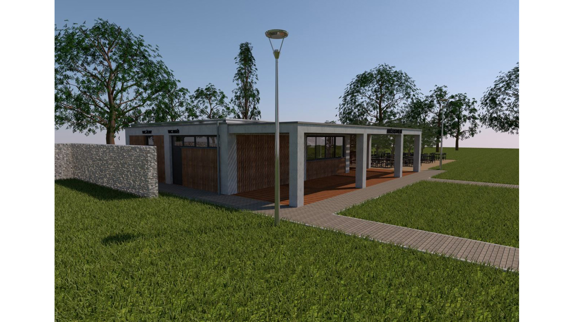 Navrhovaným řešením je umístění hřiště pro malou kopanou včetně nových střídaček a zastřešené tribuny pro 43 diváků, výměna povrchu u tenisového hřiště, nové hřiště pro workout, nové hřiště pro inline hokej, běžecká dráha na 60 m, včetně doskočiště a umístěné nových sanitárních WC buněk.