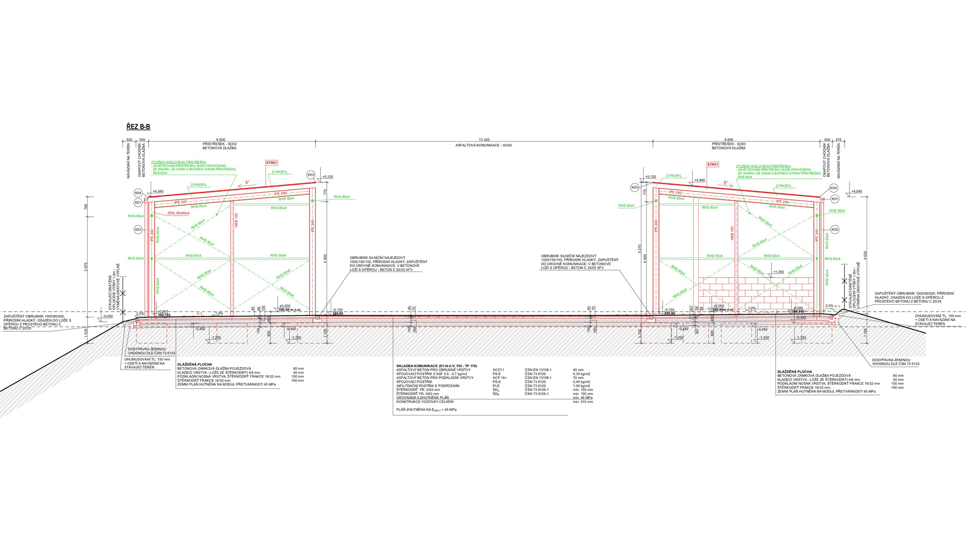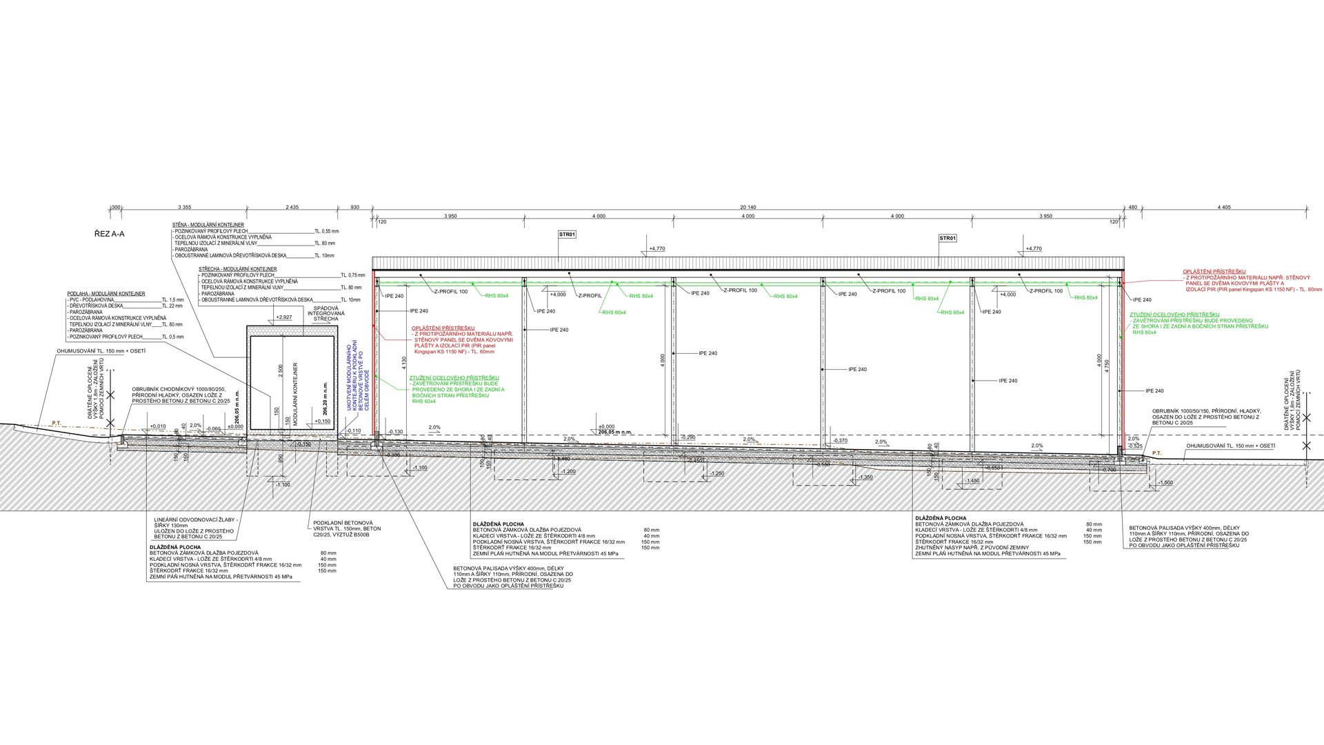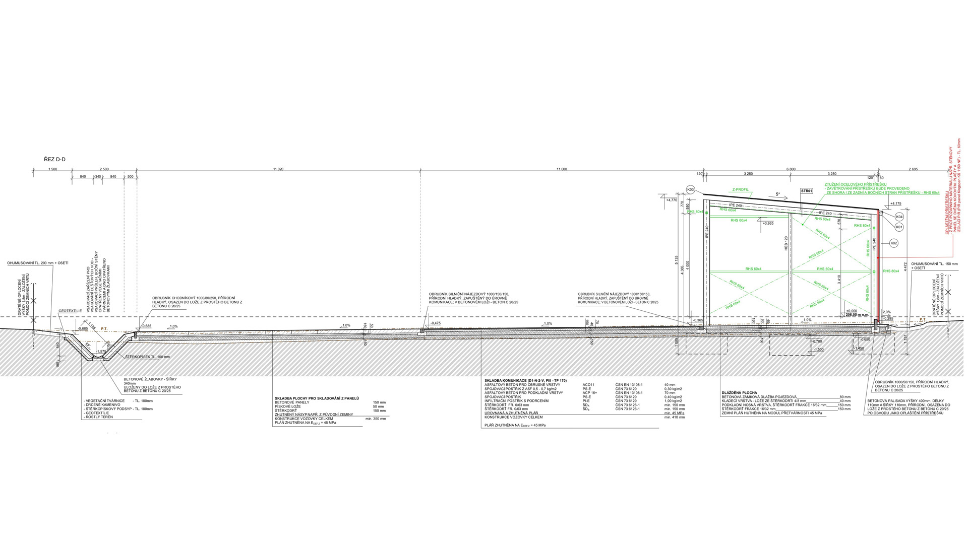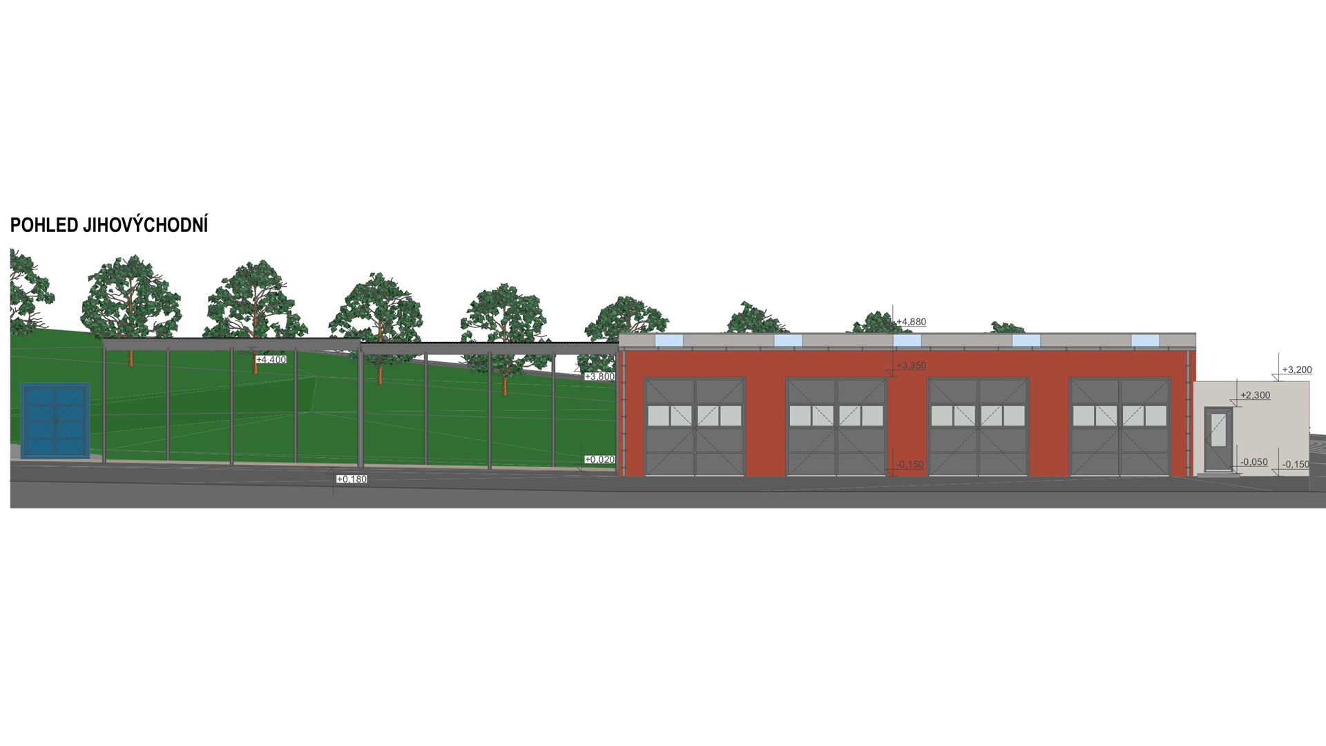 Jednalo se o rozsáhlý areál, kde se navrhovala ocelová opláštěná hala, zázemí pro zaměstnance, ocelový přístřešek a zpevněné plochy pro kompostárnu a pro ukládání jednotlivého materiálu.