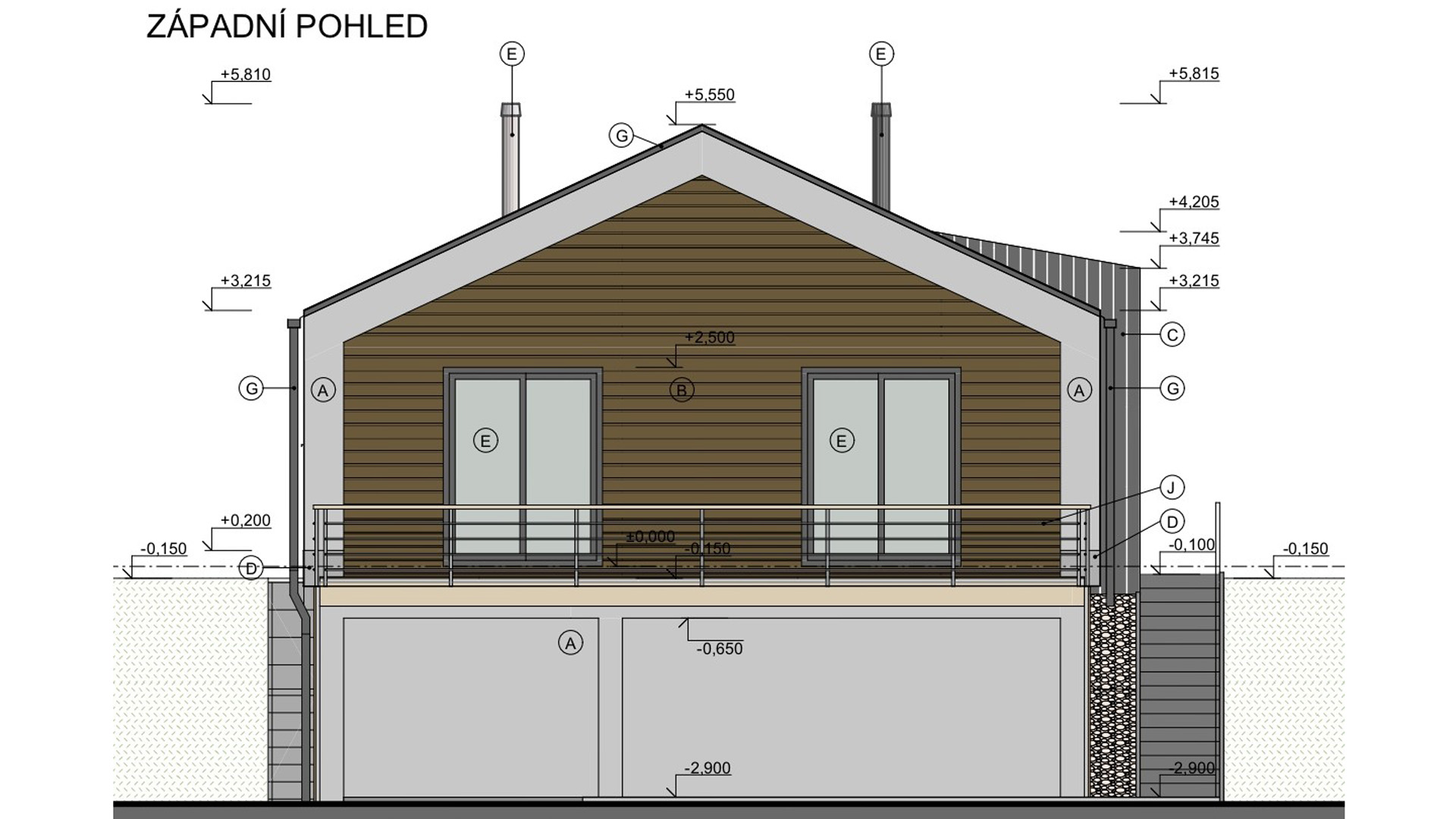 Ve spodním patře je situovaná garáž a technické zázemí rodinného domu.