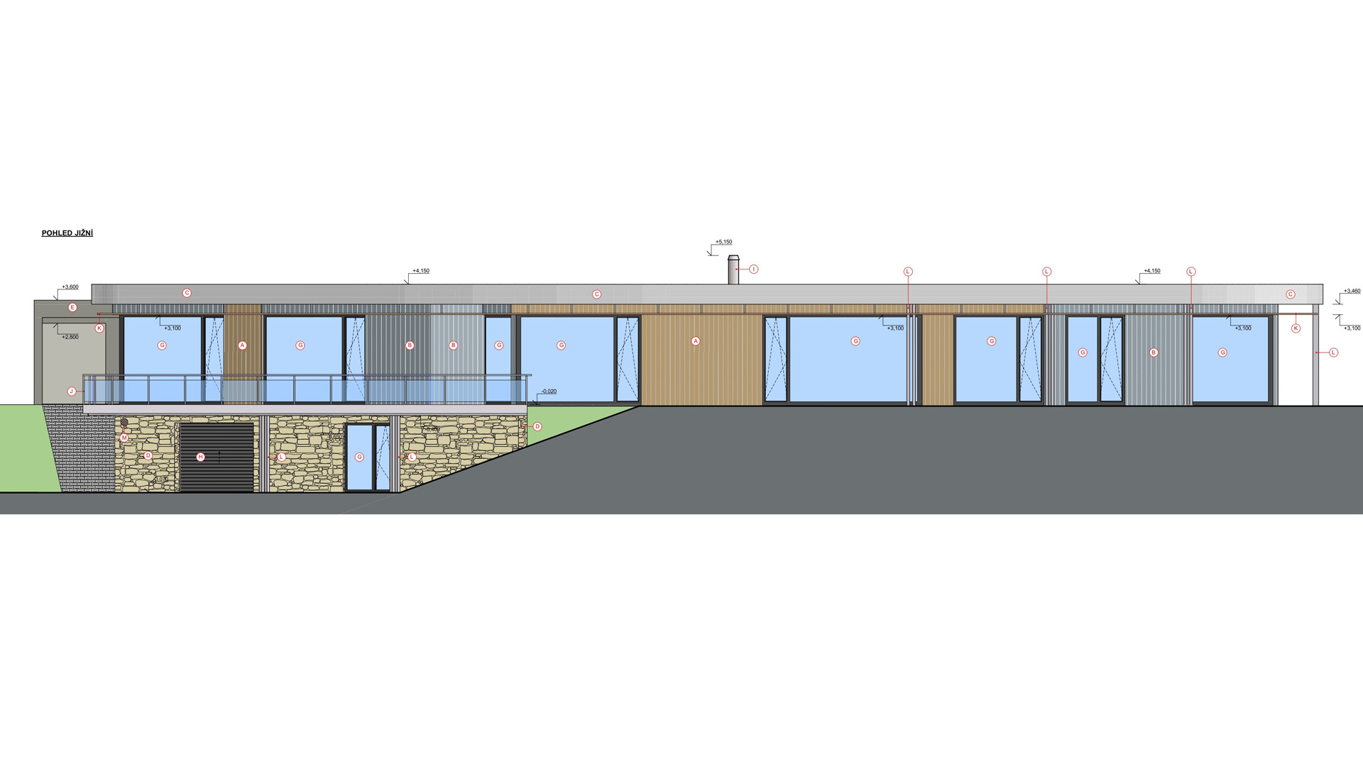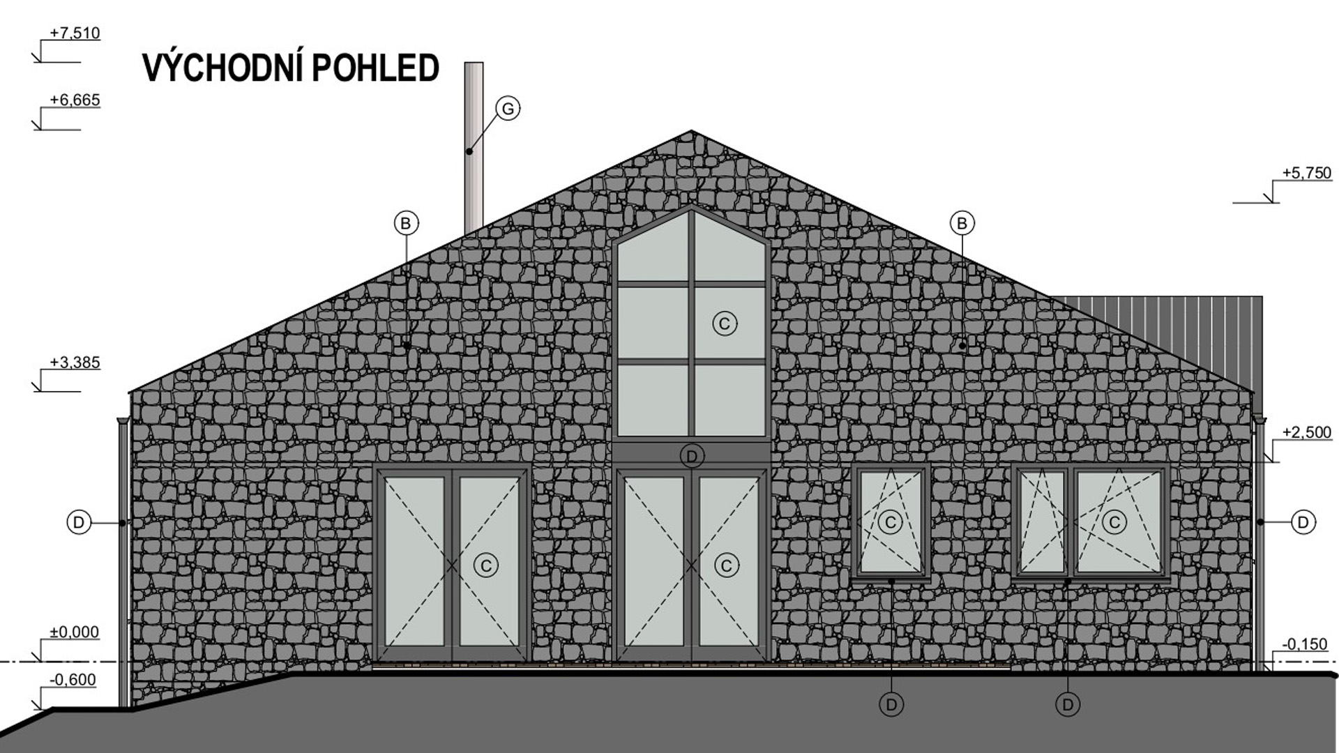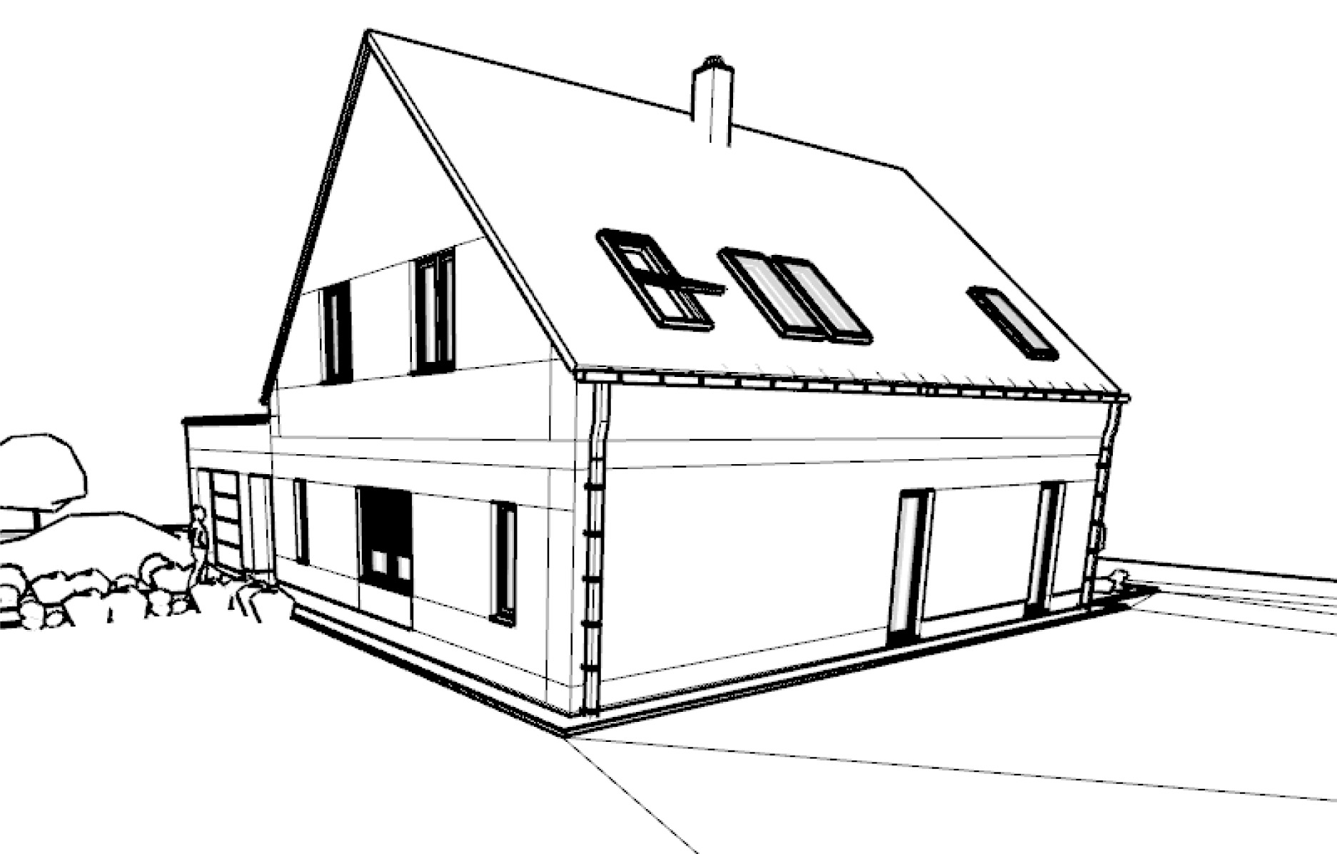 Rodinný dům se navrhoval v nezastavěné lokalitě na svažitém pozemku. Jednalo se o návrh zděného domu s kombinací kontaktního zateplovacího systému s provětrávanou fasádou obloženou dřevěným obkladem.